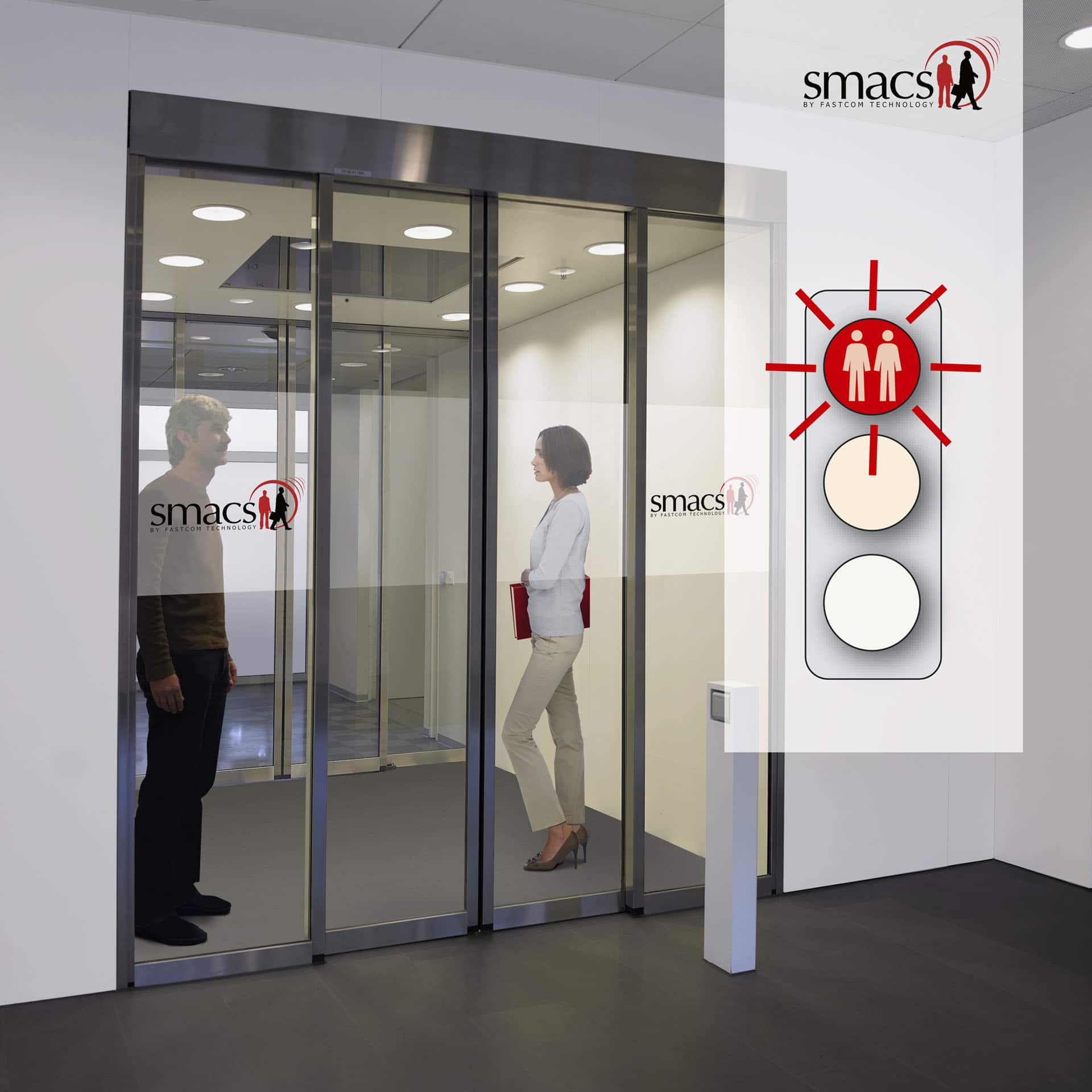 Les  salles informatiques du datacenter disposent de leur propre sas de sécurité et privatif. Le système de contrôle assure le contrôle de l’unicité de présence pour une personne et en simultané le contrôle de flux de matériel. L’analyse simultanée de l’unicité de présence de personne et du contrôle de matériel volumineux augmente la sécurité des zones sensibles. Le matériel jusqu’à une taille « EuroPallet » est autorisé. Le contrôle d’accès intégré contrôle l’autorisation d’accès sur la base d’une triple authentification (badge + biométrie + code d’accès). L’authentification du porteur de badge se réalise en comparant son empreinte à celle enregistrée dans le badge.