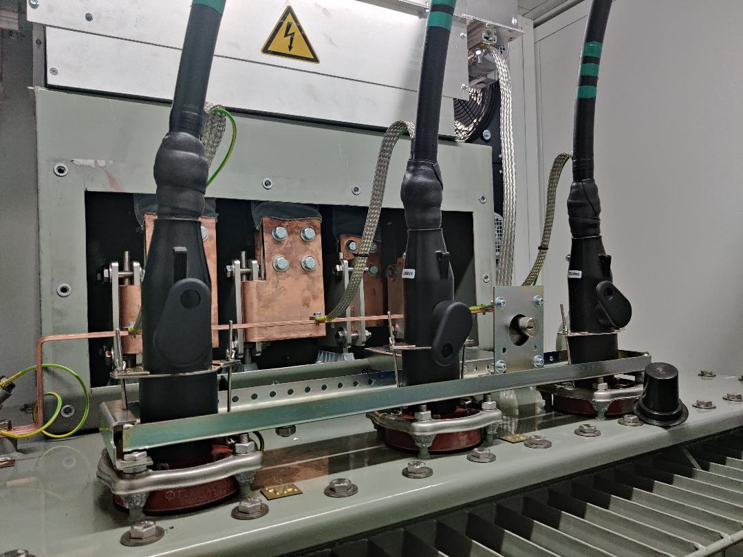 Nos transformateurs électriques sont présents dans nos containers électriques. Ce sont des transformateurs de distribution HTA/BT (technologie transformateur à huile). Leur mission est de transformer la tension 20.000 V qui circule dans notre boucle HTA interne en 400 V qui alimente le premier bâtiment Ariane. Ils sont bien sûr en redondance ; on trouve sur la voie A et sur la voie B.